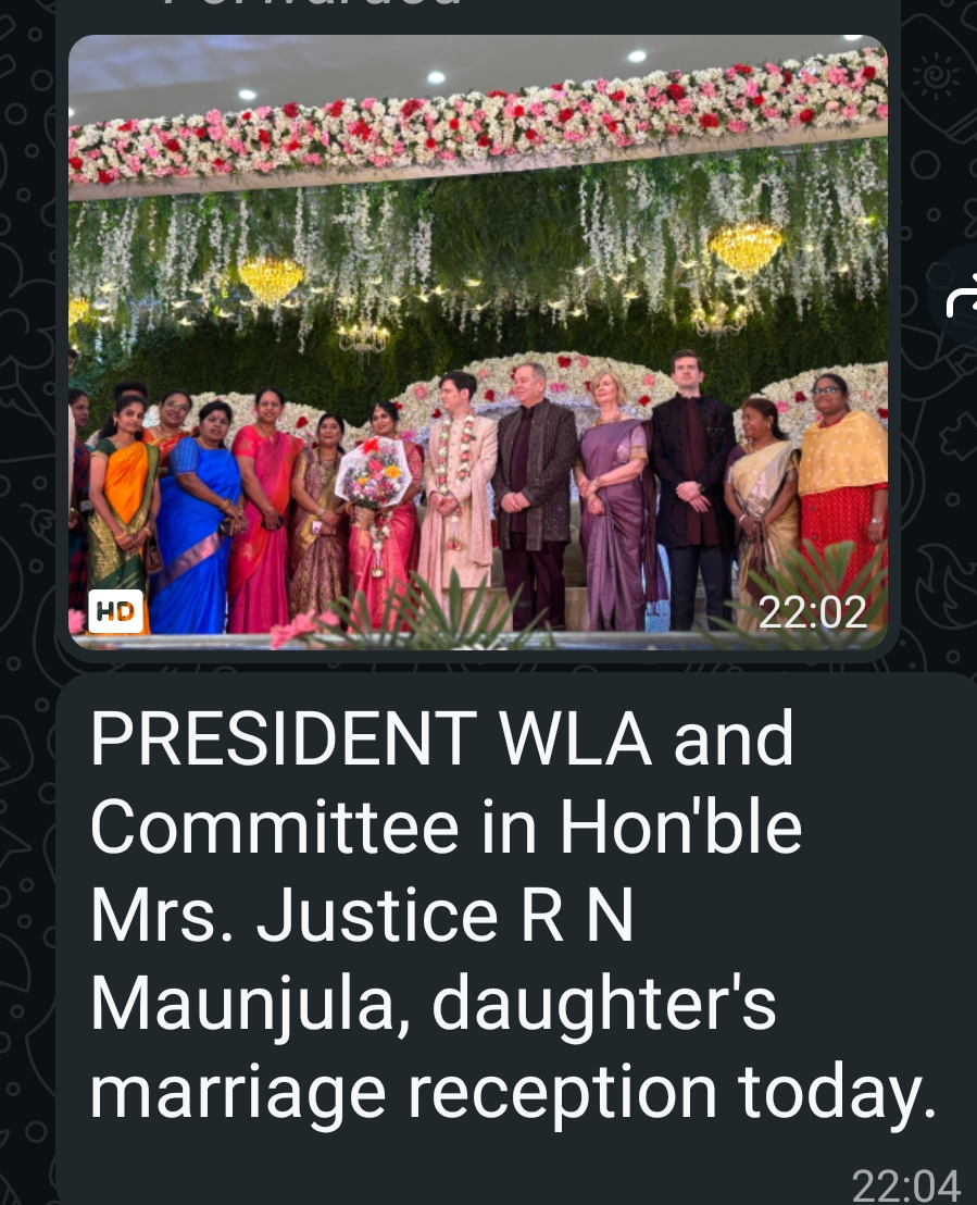 [08/02, 22:04] N.S.Revathi Wla President: PRESIDENT WLA and Committee in Hon’ble Mrs. Justice R N Maunjula, daughter’s marriage reception