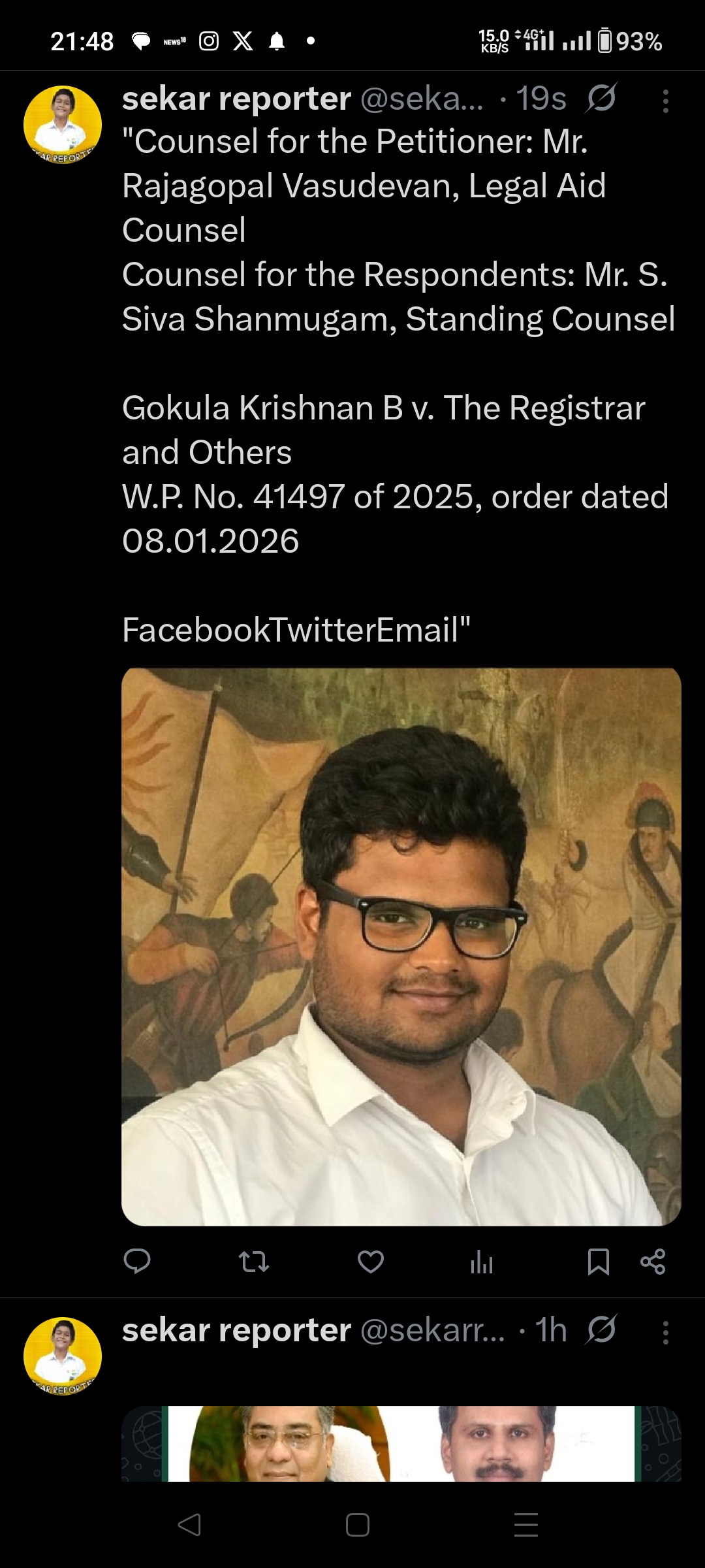 HONOURABLE MR. JUSTICE D.BHARATHA CHAKRAVARTHY W. P.No.41497 of 2025and W.M.P.No.46471 of 2025 Gokula Krishnan B … Petitioner Vs 1. The Registrar, The Tamil Nadu Dr.Ambedkar Law University,