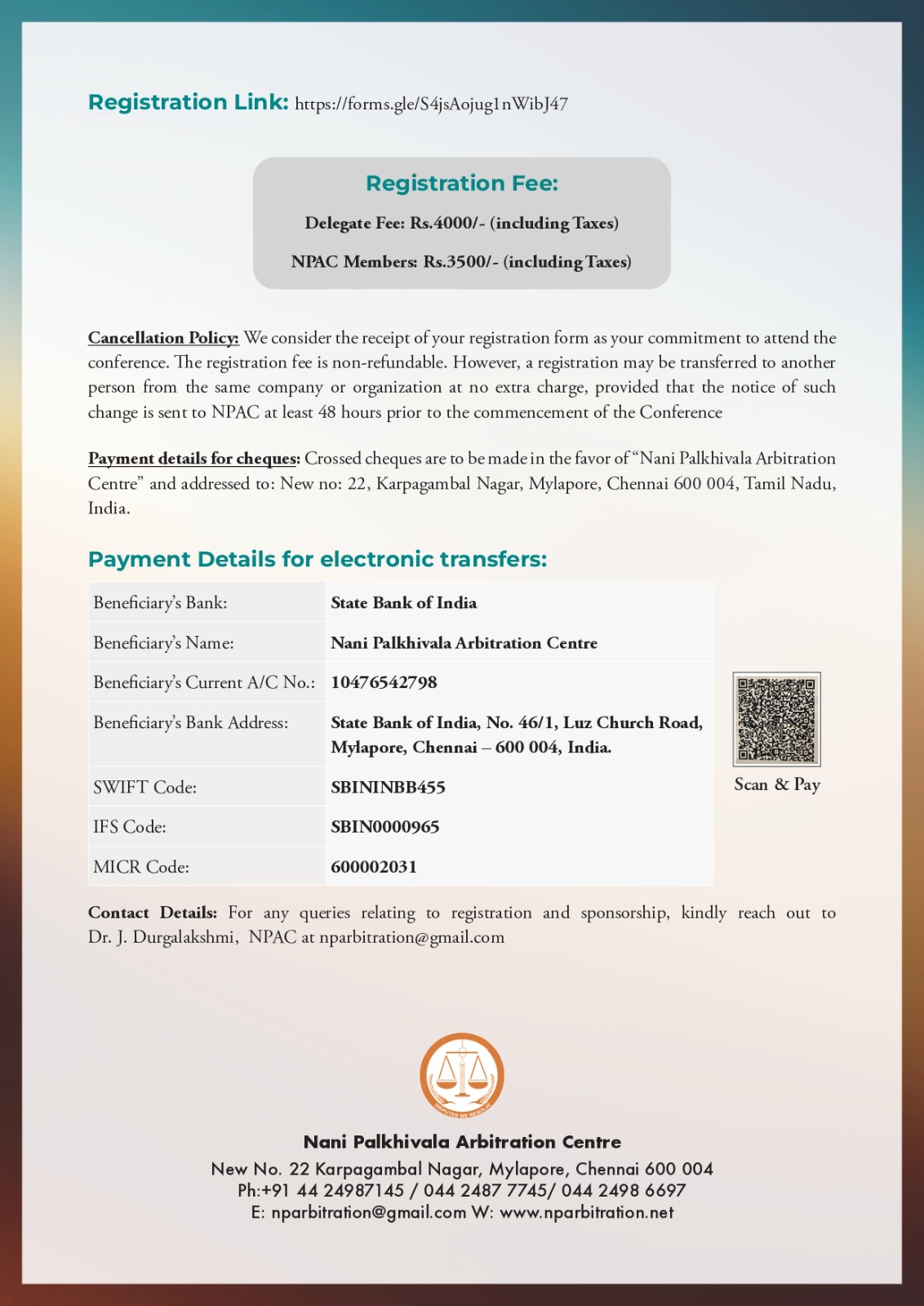 Nani Palkhivala Arbitration Centre (NPAC), in its endeavour to facilitate robust interaction amongst professionals and academicians in the rapidly evolving commercial legislation, i.e., Insolvency & Bankruptcy Code, 2016, (“IBC”), has planned for a one-day conference on “From Resolution to Resilience: Reimaging India’s Corporate Restructuring Landscape” on April 25, 2026 (Saturday) at Chennai.